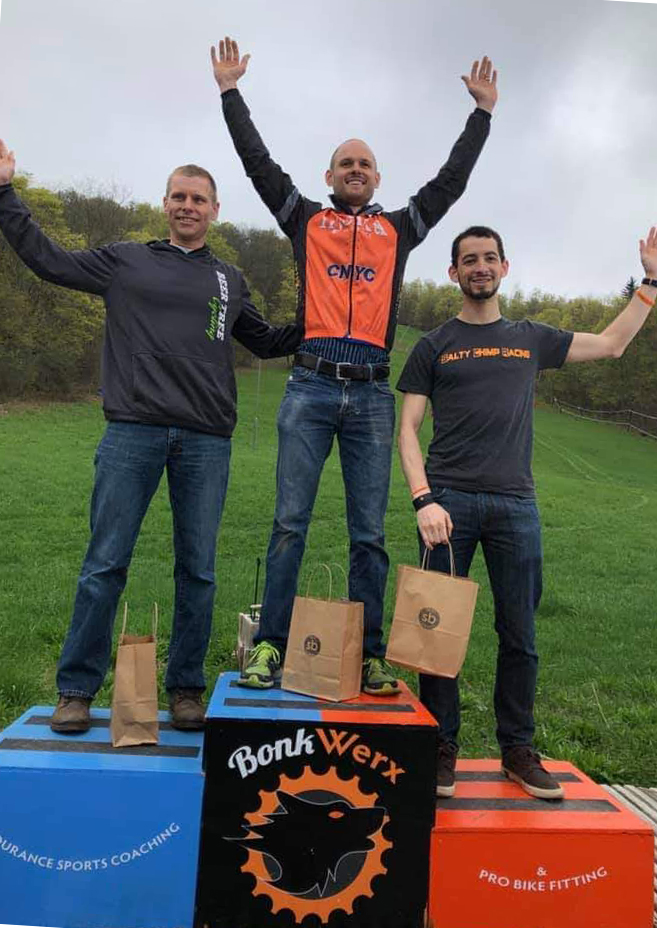 Up at the head of the race were representatives from CNYC/NYCM (Phil Maynard), Beer Tree Cycling (Jamie Hoyt), and the Chimp’s own Jon Cyganik.